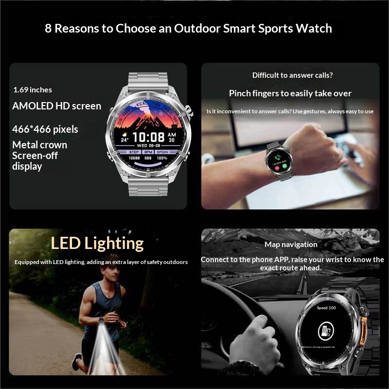 Running And Hiking Lighting Lamp  Outdoor Sports Smartwatch